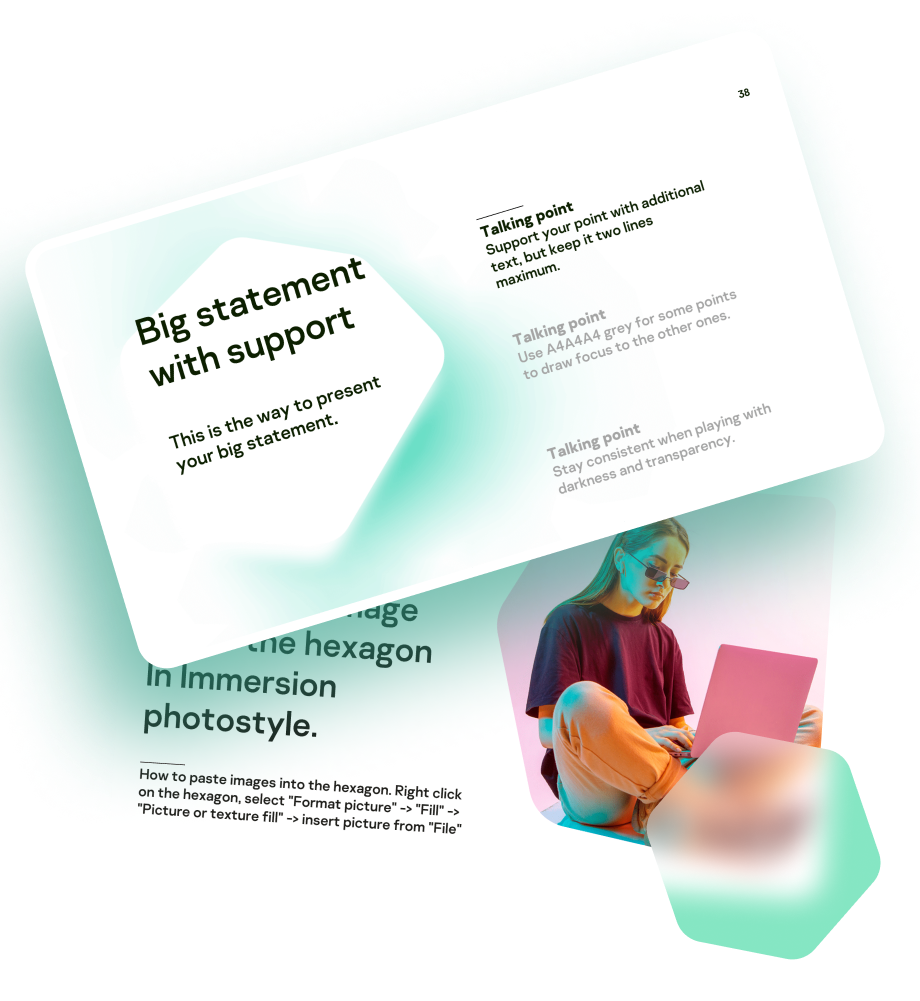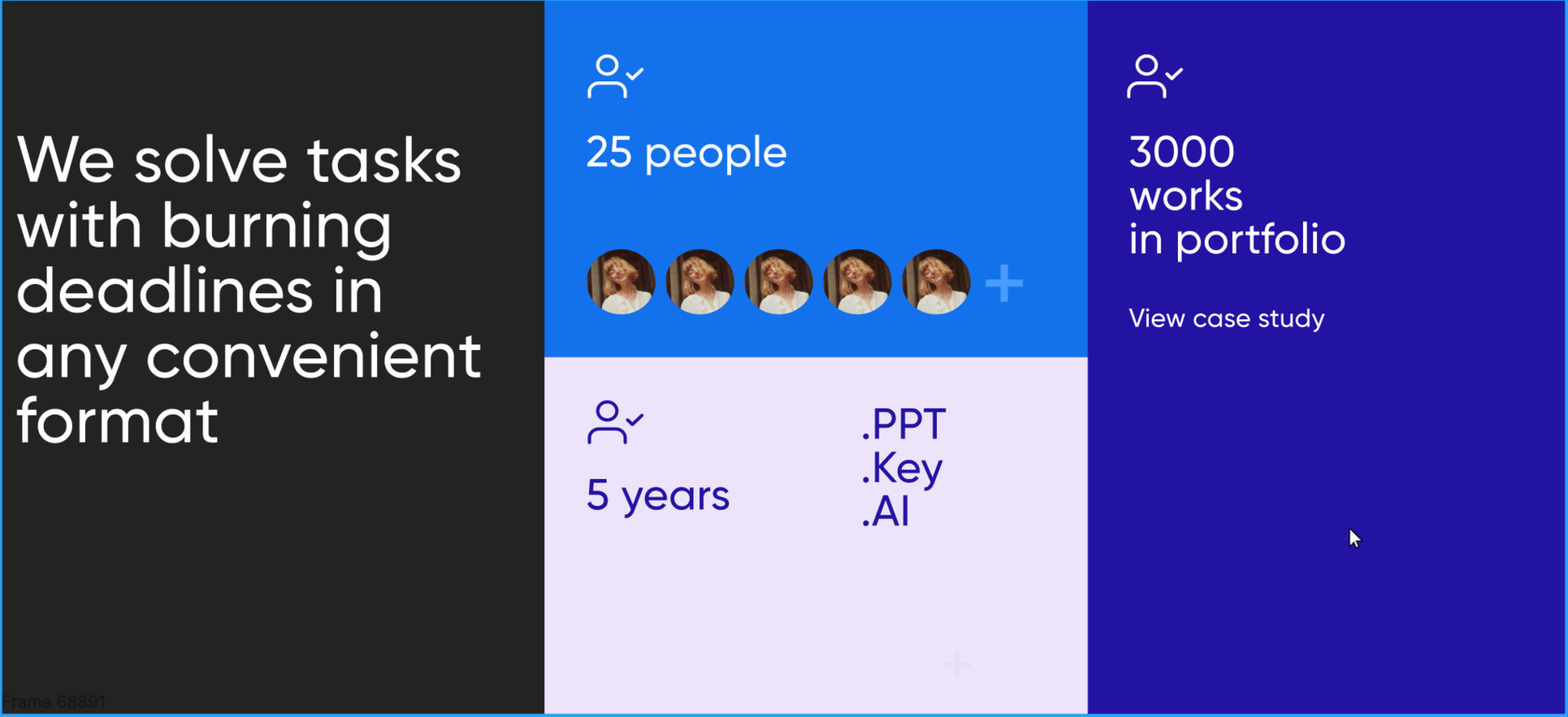 We audit the company, analyze the target audience and the market, then put together a presentation structure. In the result there will be emotional slides that will be remembered by the audience and reach all business goals.