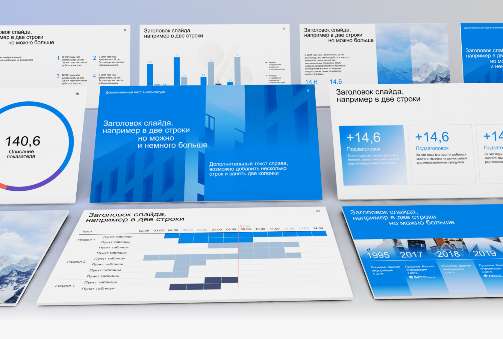 We created a visual design for presentation template for a financial services company that reflected a serious yet contemporary style